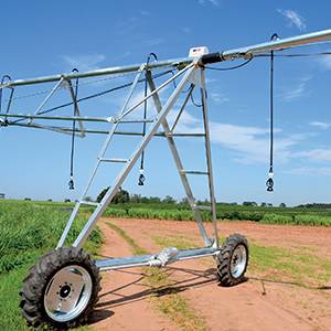 Permite irrigar vários campos com um único equipamento, pode ser rebocado em qualquer direção